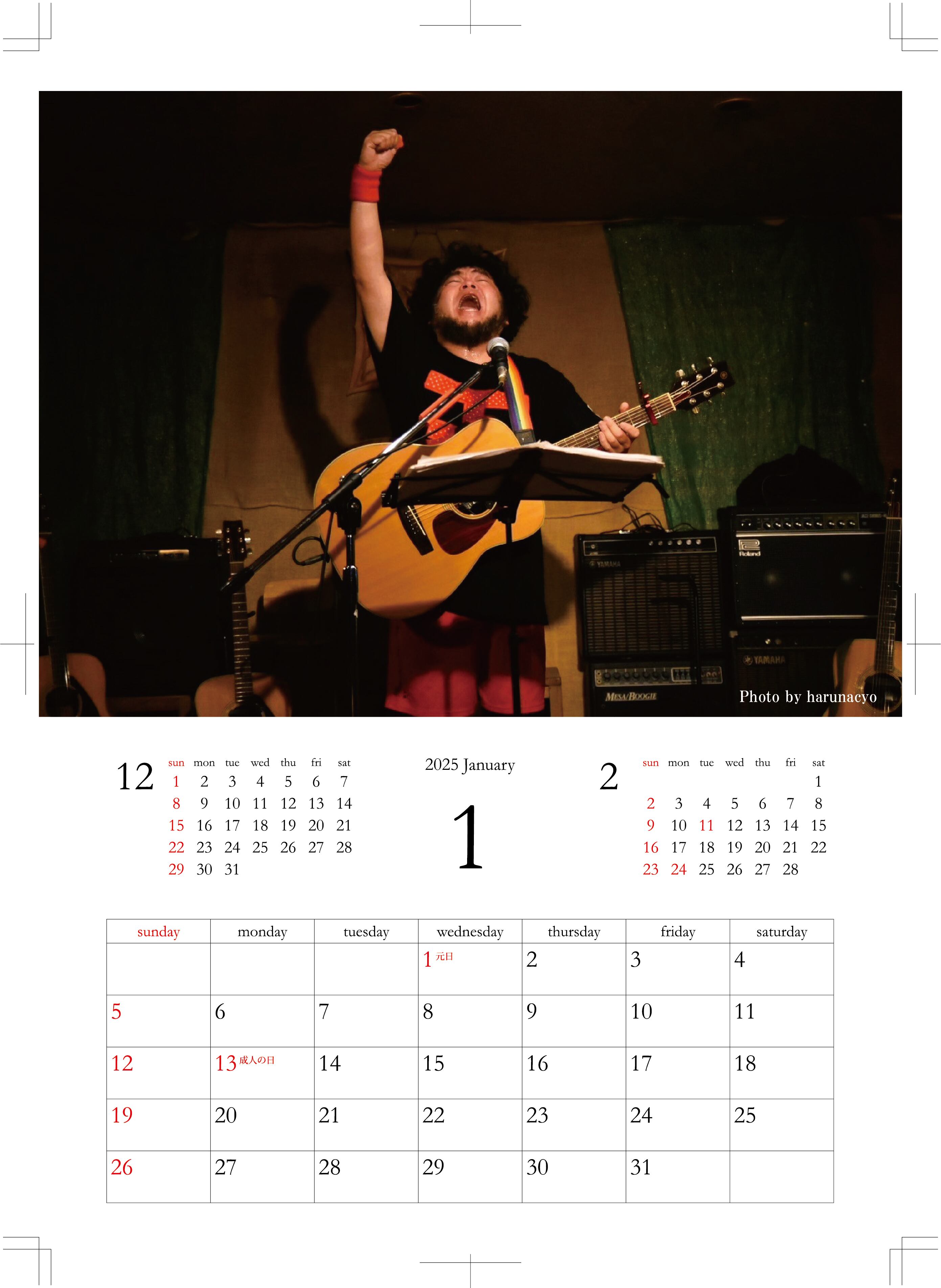 武田英祐一 2025年壁掛けカレンダー(A4サイズ)